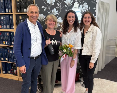 Wir feiern Irenes 25-jähriges Jubiläum! Sie leitet unsere Gardinenabteilung und sorgt mit ihrem Gespür für Stoffe, Gardinen und Dekoration für stilvolle Akzente. Zum Jubiläum haben wir sie mit einer glitzernden Fünfschillig-Flasche überrascht – ganz nach ihrem Geschmack.