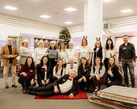 Wir feiern Irenes 25-jähriges Jubiläum! Sie leitet unsere Gardinenabteilung und sorgt mit ihrem Gespür für Stoffe, Gardinen und Dekoration für stilvolle Akzente. Zum Jubiläum haben wir sie mit einer glitzernden Fünfschillig-Flasche überrascht – ganz nach ihrem Geschmack.