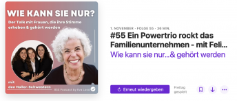 Drei Schwestern, eine schöner als die andere, eine ideenreicher als die andere, eine energischer als die andere. Kurz, ein Powertrio, das fasziniert. Zusammen mit den eben so kraftvollen Eltern rocken sie das Familienunternehmen. Zu dritt sind sie Gast in der Podcastfolge mit Eva Loschky. Sie teilen sich das Mikro und bringen ihr Strahlen in ihre Stimmen.
