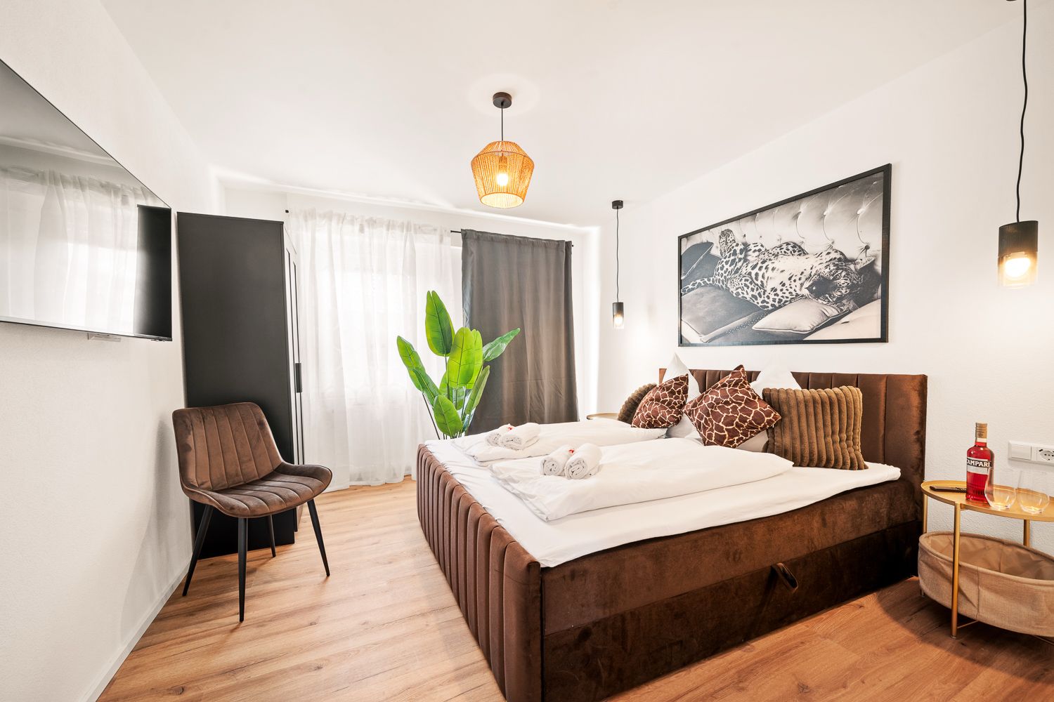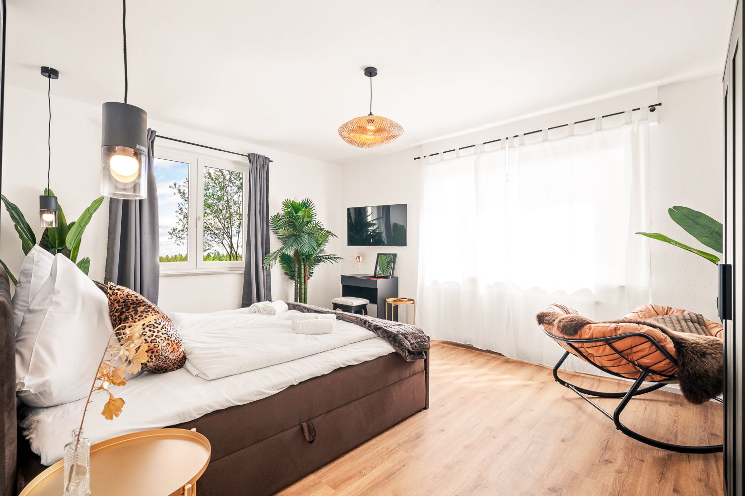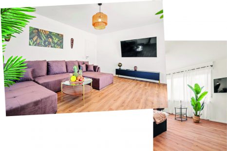 Für eine stilvoll eingerichtete Ferienwohnung in Kressbronn durften wir einen Vinyl-Designboden in authentischer Eiche-Holzdielenoptik liefern. Die warme Farbgebung und die naturgetreue Struktur verleihen den Räumen eine einladende, wohnliche Atmosphäre. Der Boden ist sowohl zum Klicken als auch zur vollflächigen Verklebung erhältlich.