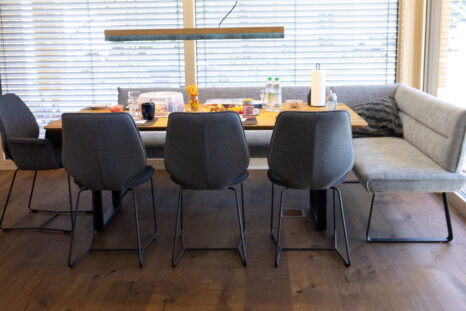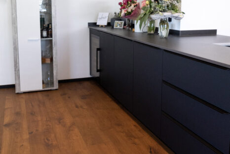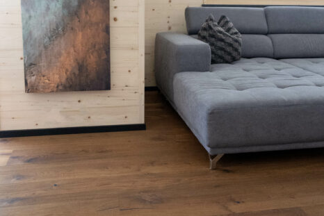 Echtholzparkett für die Wohnräume. Unser Bodenhersteller bezieht übrigens seine Produkte aus nachhaltigen Forstwirtschaften Europas. Bodentraum par excellence.