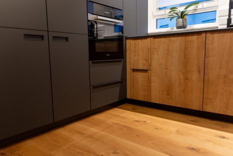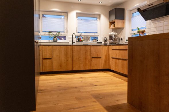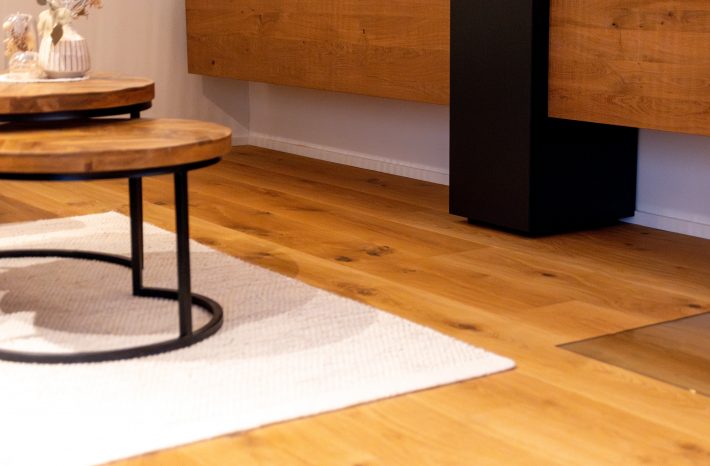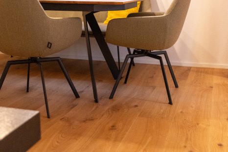 Die Natur nach Hause holen. Dieser Wunsch wurde mit dieser Landhausdiele Eiche bei unseren Kunden in Blitzenreute wahr. Neben der besonderen Ästhetik durch die goldene Kittung der Äste, ist er auch für extreme Beanspruchungen geeignet und pflegeleicht.