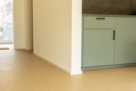 Hier durften wir mehrere Wohnungen mit Linoleum gestalten. Linoleum ist cool! Warum? Es ist pflegeleicht, langlebig und gleichzeitig zu 100 % recyclebar. Ergänzt wurde das Objekt mit den passenden Vorhänge, die Schall schlucken und gleichzeitig die Möglichkeit bieten den Raum nach belieben abzudunkeln.