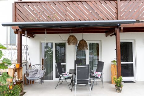 Familie Bregler in Wilhelmskirch hat ihre Terrasse und ihren Balkon mit einer flexibel einstellbaren Markise ausgestattet. Der steile Neigungswinkel ermöglicht optimalen Schatten und zusätzlichen Sichtschutz, sodass jeder Sonnenstand individuell genutzt werden kann. So wird der Außenbereich zum perfekten Rückzugsort an sonnigen Tagen.