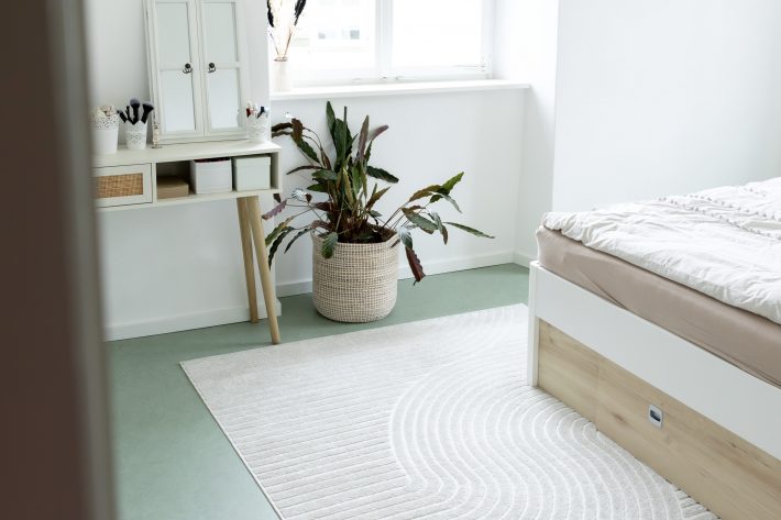Im schönen Pfarrhaus in Urnau durften wir im Schlafzimmer einen neuen Boden verlegen. Der elegante Mint-Ton mit feiner Marmorierung und sanften Ton-in-Ton-Nuancen fügt sich dezent in den Raum ein und schafft eine ruhige, harmonische Atmosphäre.