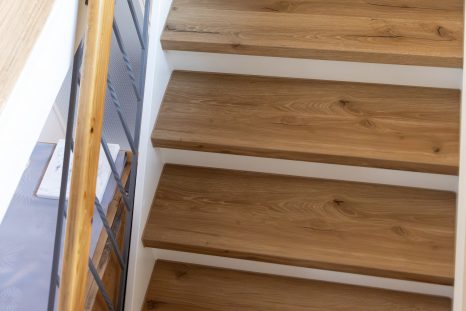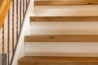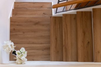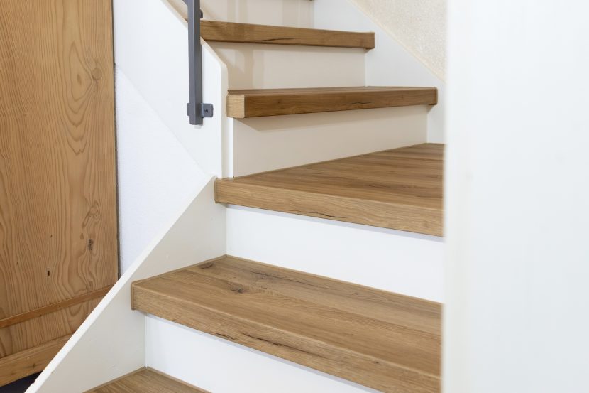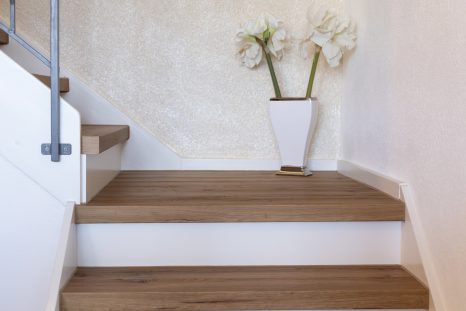 Diese schöne Treppe durften wir mit hochwertigem Vinyl belegen, das nicht nur pflegeleicht und langlebig ist, sondern auch mit seiner warmen Optik nahezu nicht von echtem Holz zu unterscheiden ist. So vereint die Treppe Wohnlichkeit und Komfort mit einer hohen Alltagstauglichkeit – für ein harmonisches Gesamtbild und einem rundum gelungenen Raumkonzept.